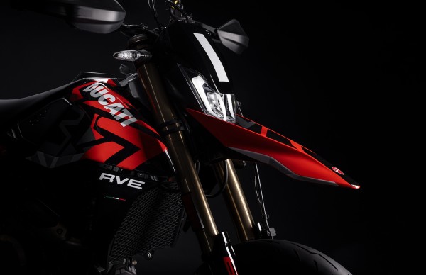Агрессивный, простой и компактный внешний вид, типичный для готового к гонкам супермотарда, сочетается с чистыми и хорошо обработанными поверхностями, характерными для каждого Ducati.